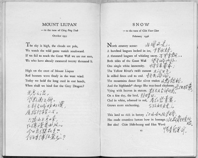 倉孝和在一本英文版《毛澤東詩詞》上手寫中文原詩。作者供圖